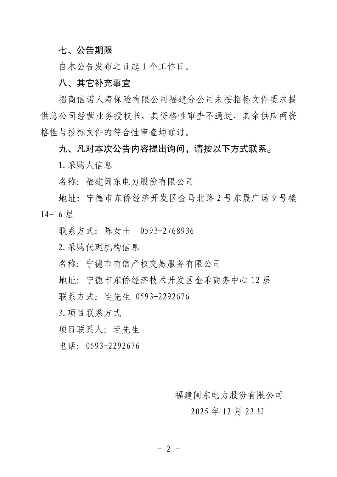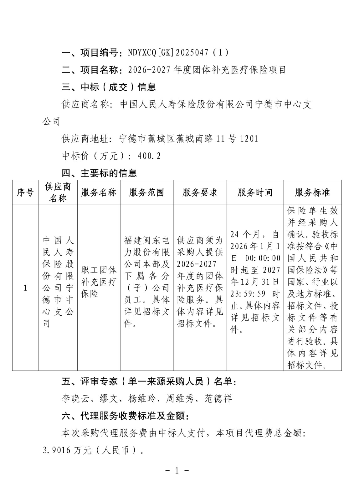福建閩東電力股份有限公司關(guān)于2026-2027年度團(tuán)體補(bǔ)充醫(yī)療保險(xiǎn)項(xiàng)目公開招標(biāo)中標(biāo)公告