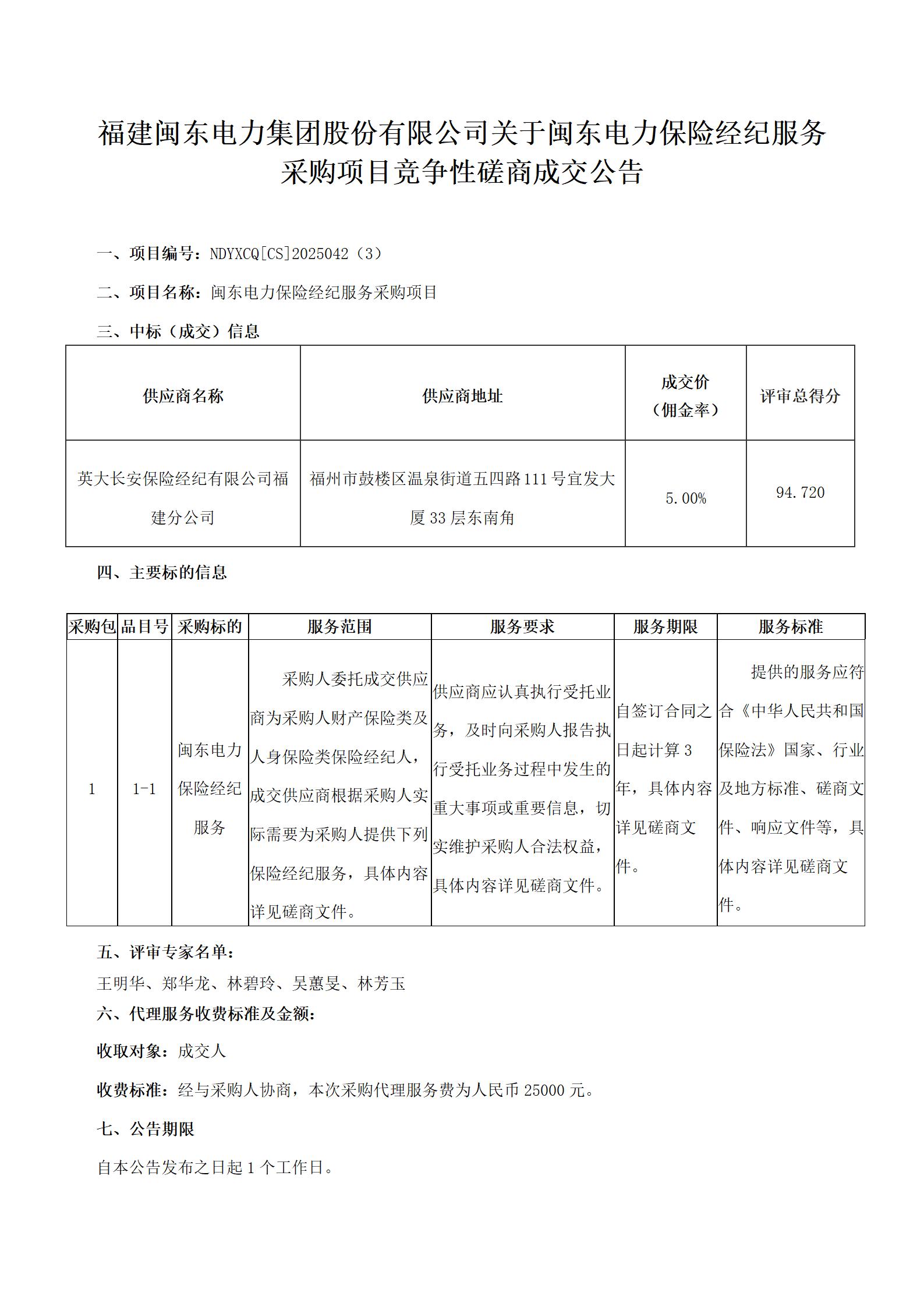 福建閩東電力集團(tuán)股份有限公司關(guān)于閩東電力保險(xiǎn)經(jīng)紀(jì)服務(wù)采購項(xiàng)目競爭性磋商成交公告